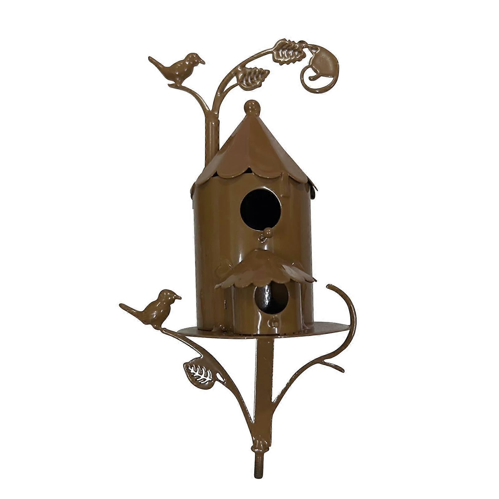 RnemiTe-amo Country Cottage Bird House Stakes for Outside, Baroque Cottage Bird House Stake with Pole, Distressed Teal Metal Yard Art