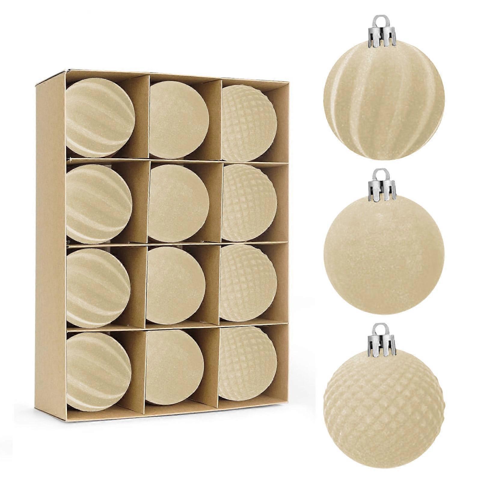Viflosae 12 Pcs Velvet Flocked Christmas Ball Ornaments, Compatible with Xmas Tree Decorations, Plastic Hanging Ornament Set