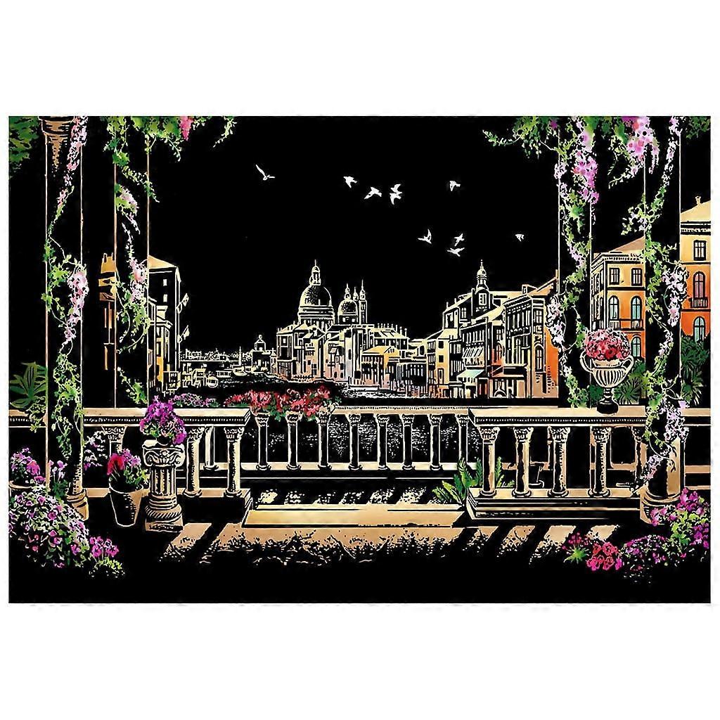 School Supplies Night City Magic Scratch Art Painting Paper DIY Drawing Brush Stick Kits Decor School opening Multi-color