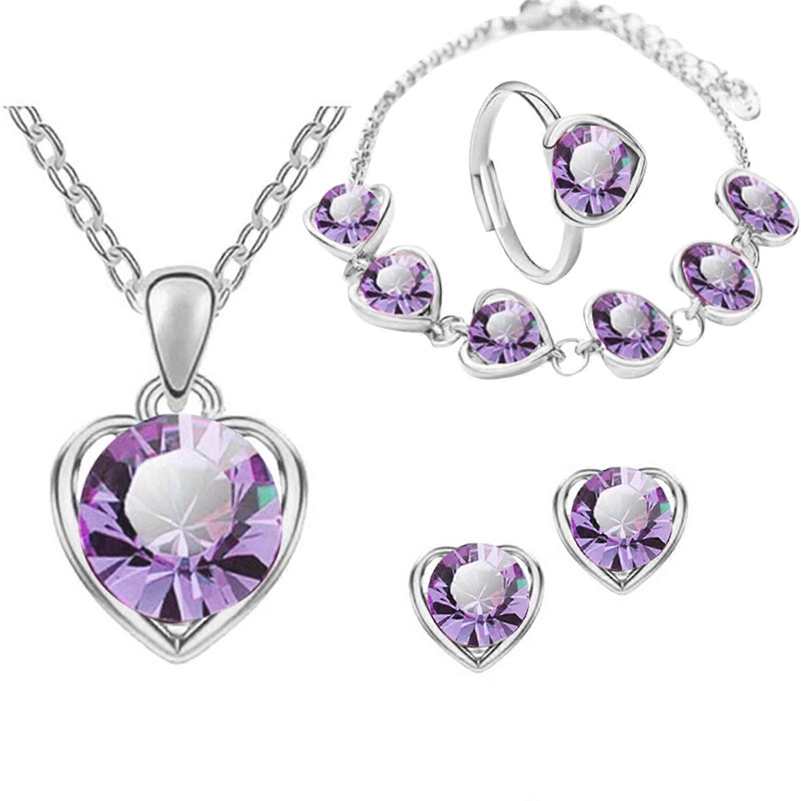 Fashion Crystal sliver Heart Necklace Earrings Ring Bracelet Four Piece Set