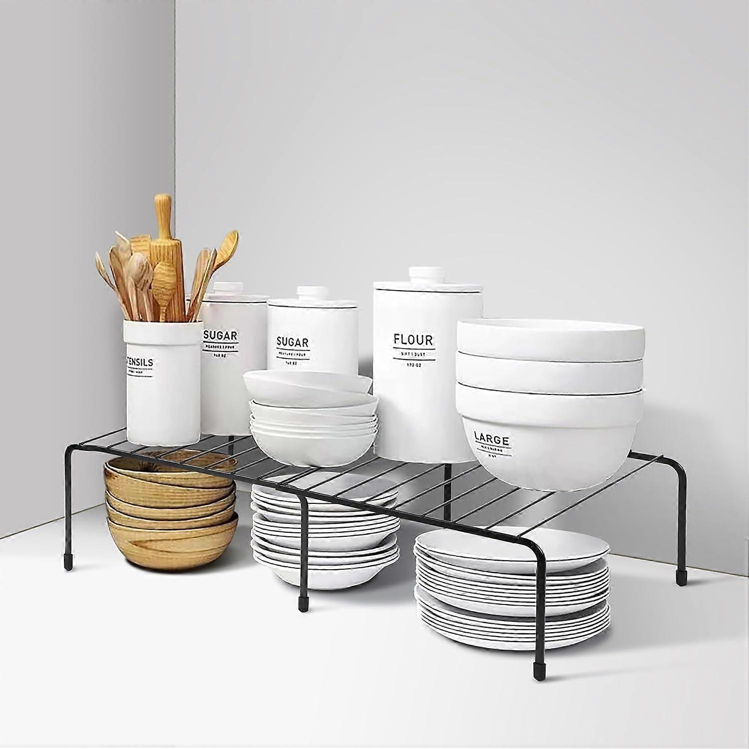 Expandable Cabinet Shelf Rack, Metal Storage Organizer Rustproof, Space Saving for Kitchen, Fridge, Bathroom, Compatible with Spice & Dish Cupboards