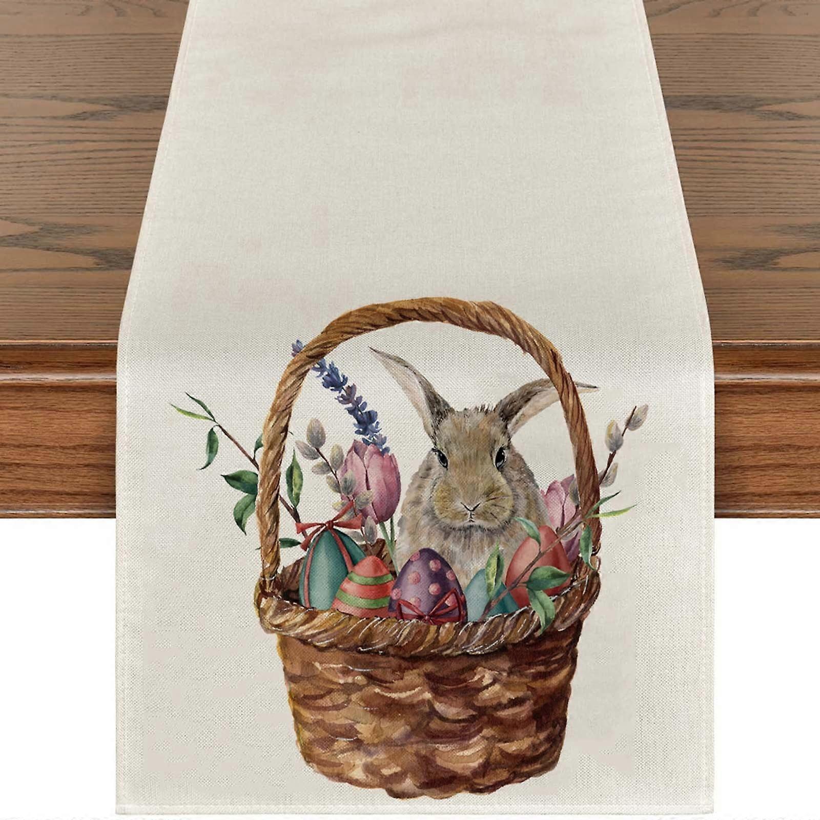 Giyblacko Decorative Table BannerEaster Table Runner Festive Bunny Egg Small Print Vintage Easter Decoration Linen Tablecloth Easter Home Decor