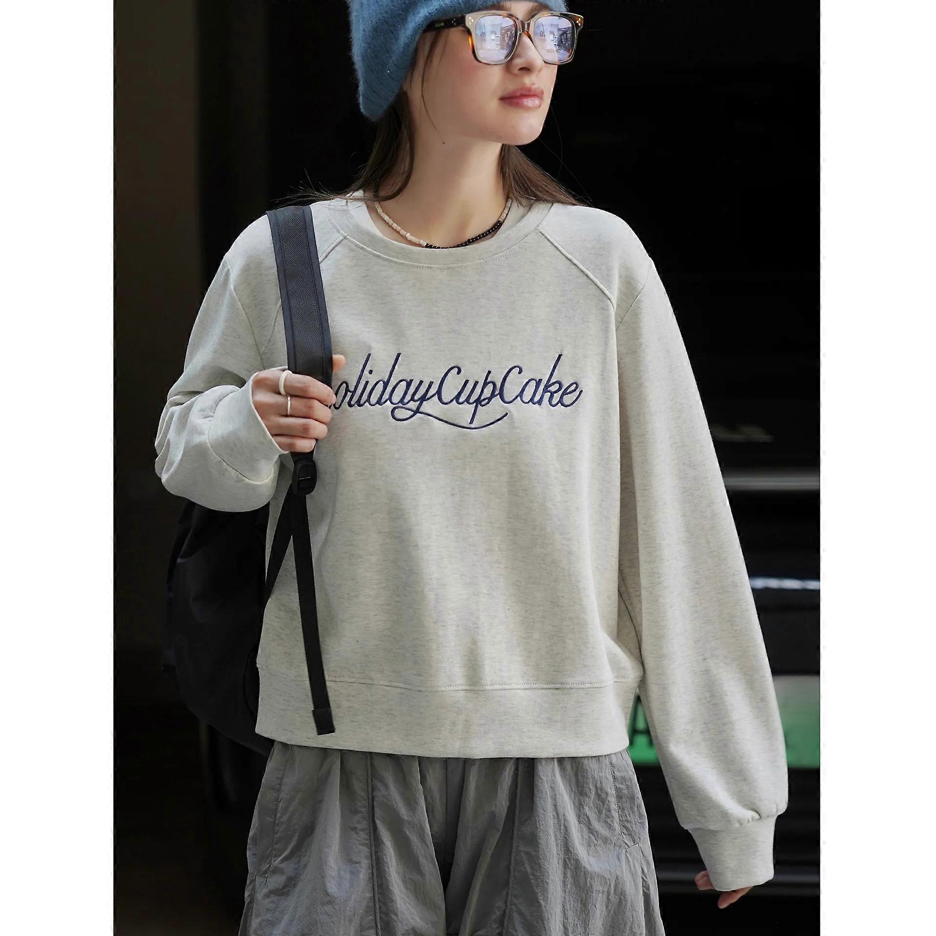 Cool Korean Style round Neck Letter Embroidery Sweatshirt 3D Shape Women's Top Early Autumn New Arrival from Louvre