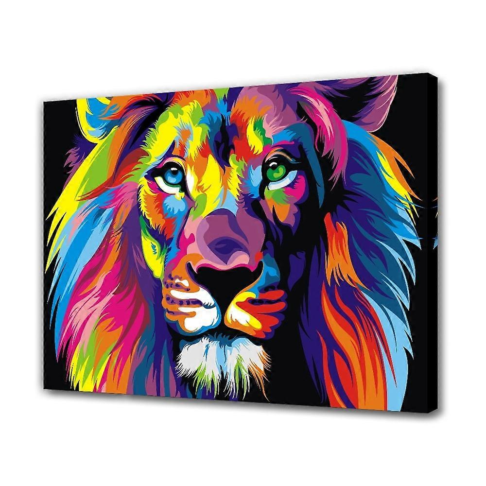 Abstract Watercolor Animal Lions Canvas Poster Bedroom Decor Sports Landscape Office Room Decor Gift,Frame-style,12x18inch(30x45cm)