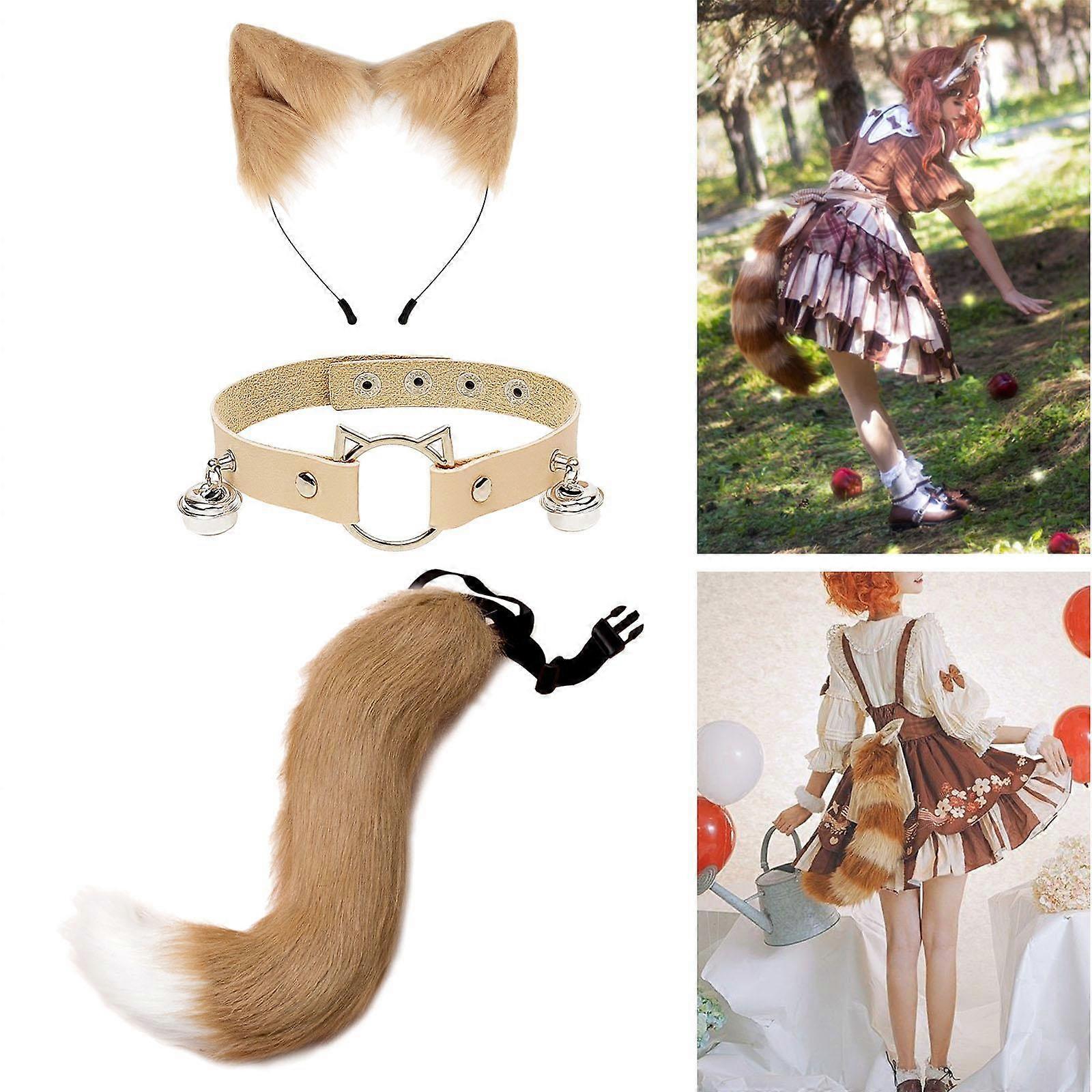Cute Cat Ears Tail Cosplay Headband Accessories Props Choker Halloween Furry