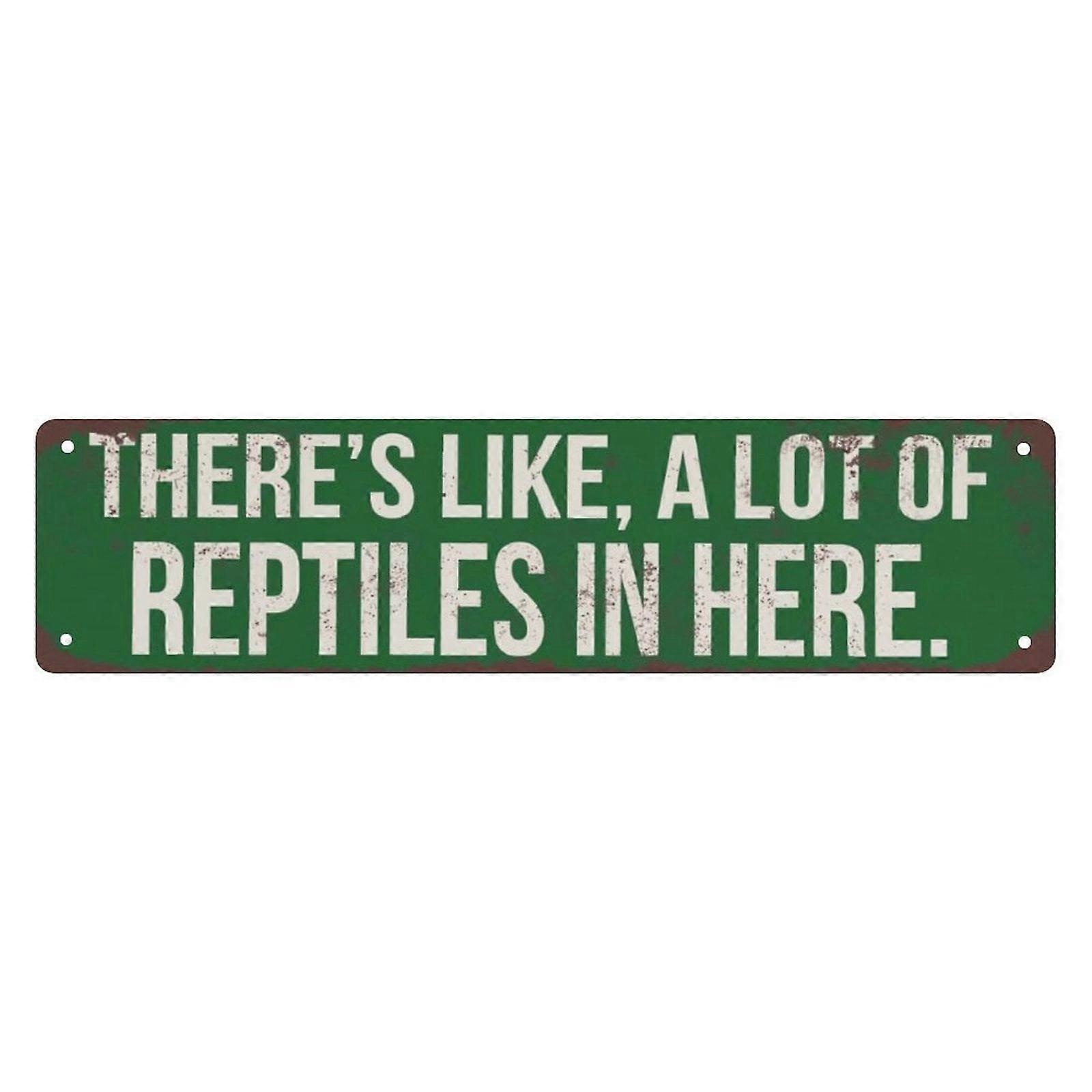 Vintage Metal Tin Sign: There's Like a Lot of Reptiles in Here - Rustic Wall Decor for Bar, Man Cave, Shop - 4x16 inch
