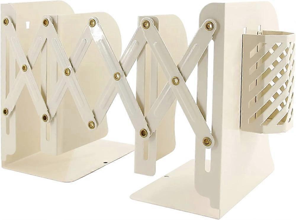 NOGIS Adjustable Bookends 3-Compartment Heavy Duty Metal Organizer, Compatible with Desk/Shelf, Expandable Magazine Rack, White