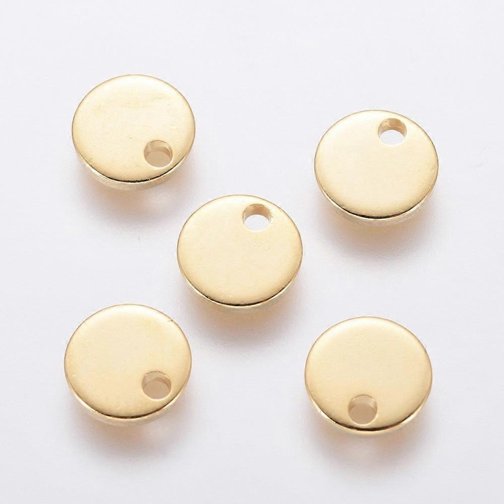 20pc 304 Stainless Steel Charms Stamping Blank Tag Flat Round Golden 8x1mm Hole: 1.4mm