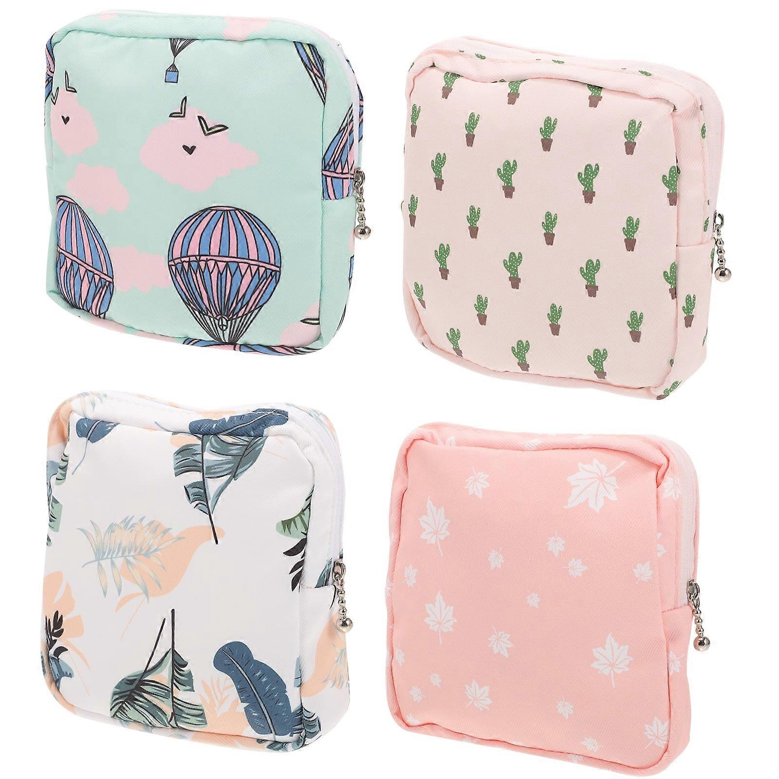 4 Pcs Portable Sanitary Napkin Storage Bag Female Gifts Women Decorative Period Pouch Balloons Hygiene Miss Girl Fabric Metal