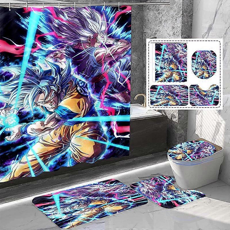 Dragon Ball HD Printed Waterproof Polyester Shower Curtain 4-Piece Set Compatible with Square Non-Slip Mat, U-Shape, Toilet Cover & 72"x72" Curtain