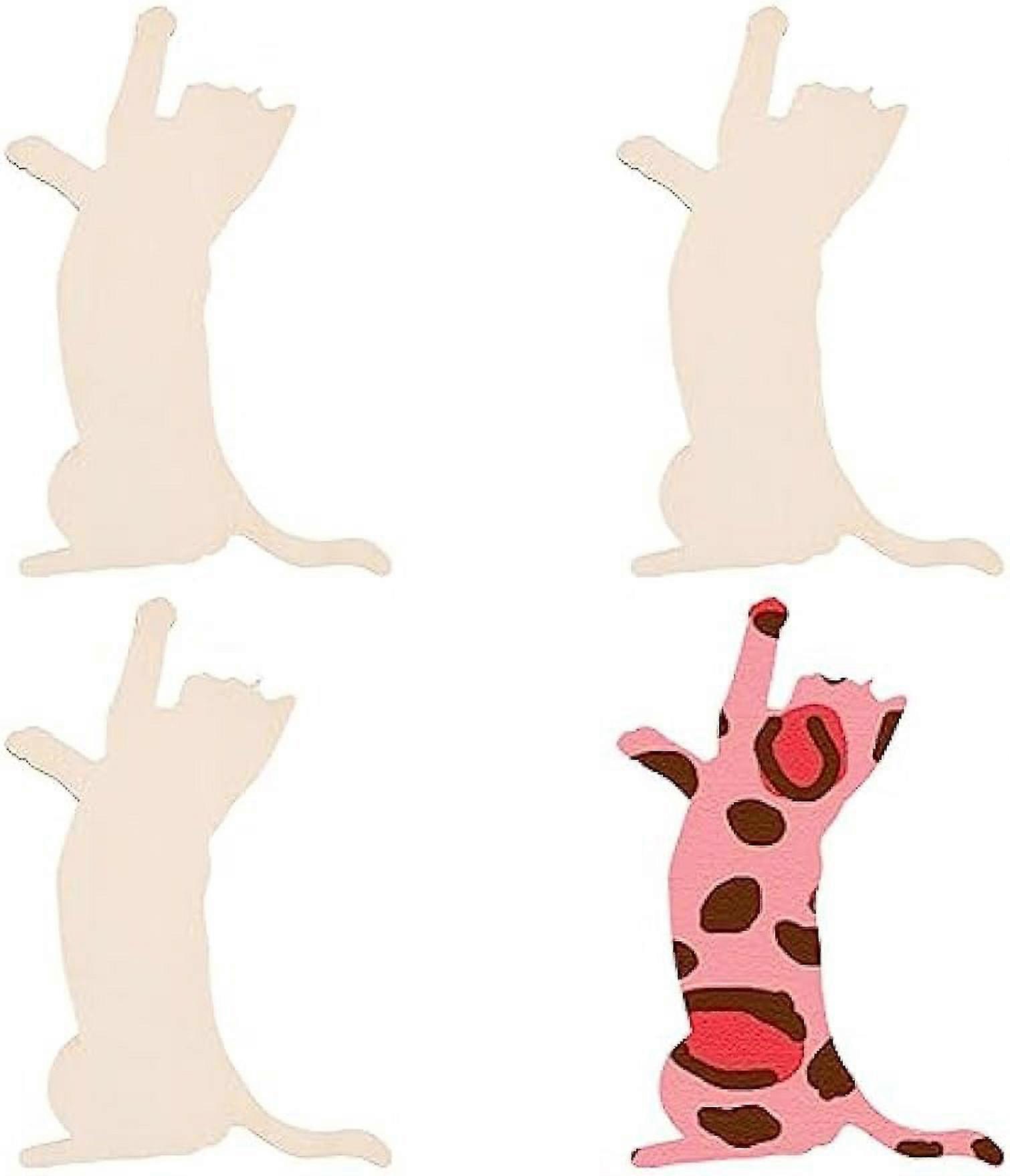 4Pcs 5.8x4.3 Inch Unfinished Wood Cat Cutouts, Blank Undyed Slices for DIY Crafts, Wall Decor, Pendants