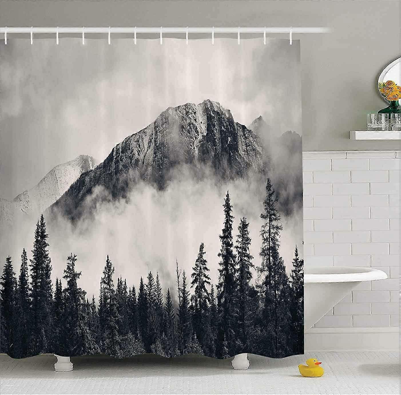 Canadian Smoky Mountain Cliff Outdoor Photo Art Shower Curtain 72"x72", Waterproof Polyester, Hooks Included, No Liner Needed