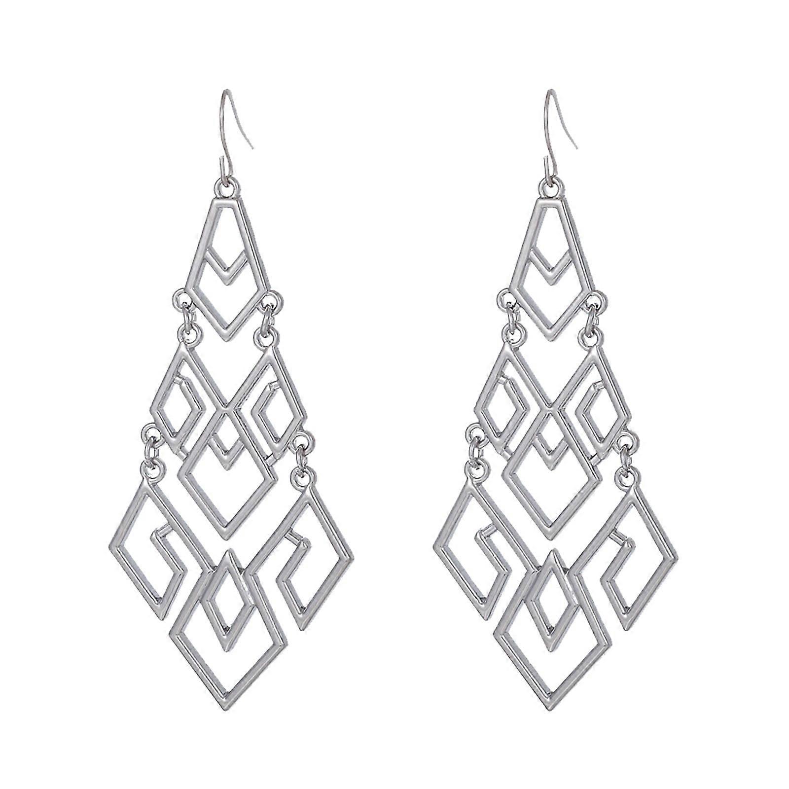 Bentne Jewelry Stud Earrings, Ethnic Bohemian Hollow Square Alloy Ear Studs, Retro Geometric Design for Women, Gift for Birthday, Party,
