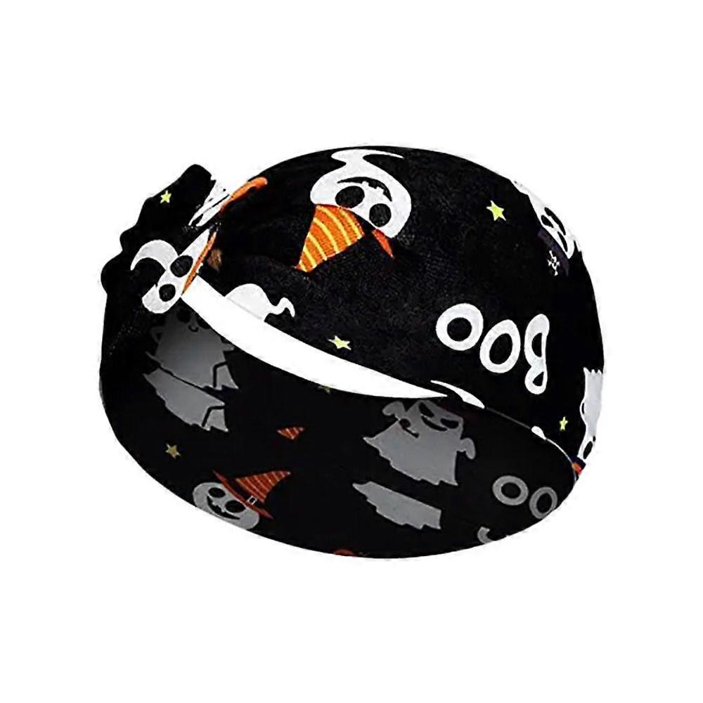 Halloween Skull Print Wide Headbands Knot Elastic Turban Headwrap For Women