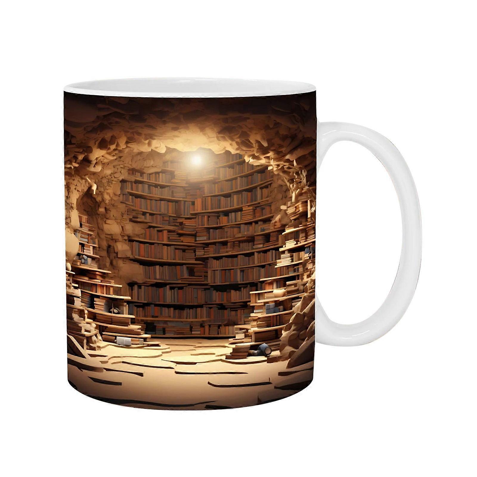 Herrnalise 3D Bookshelf Ceramic Mug, Library Coffee Cup, Funny Gift for Book Lovers, Creative Design - Compatible with bookshelf decor enthusiasts