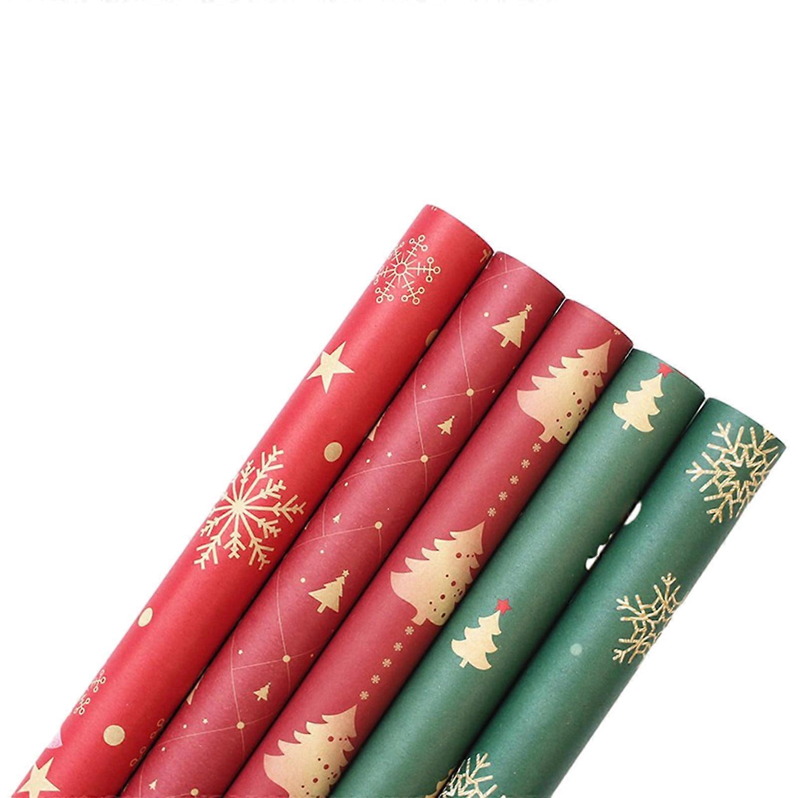 Christmas Wrapping Paper Roll with Cut Lines, Glitter Metallic Foil Shine - 5 Rolls 19.6" x 27.5", for Holiday, Birthday, Wedding, Baby Shower