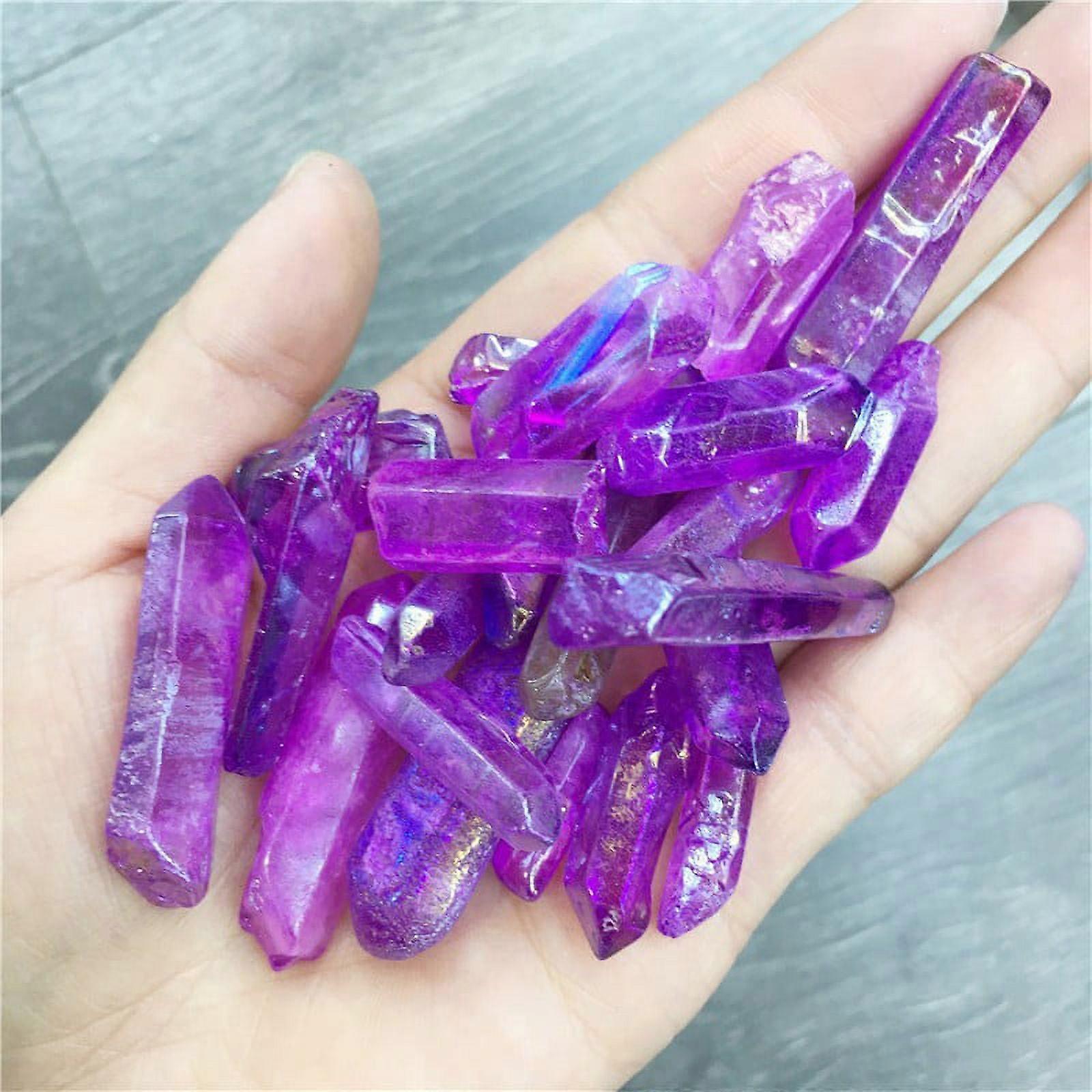 Heart Shaped Crystal Rocks, Natural Plated Color Electroplated Blue Pink Purple Multi-Color Crystal Column 3-5cm, 1pc