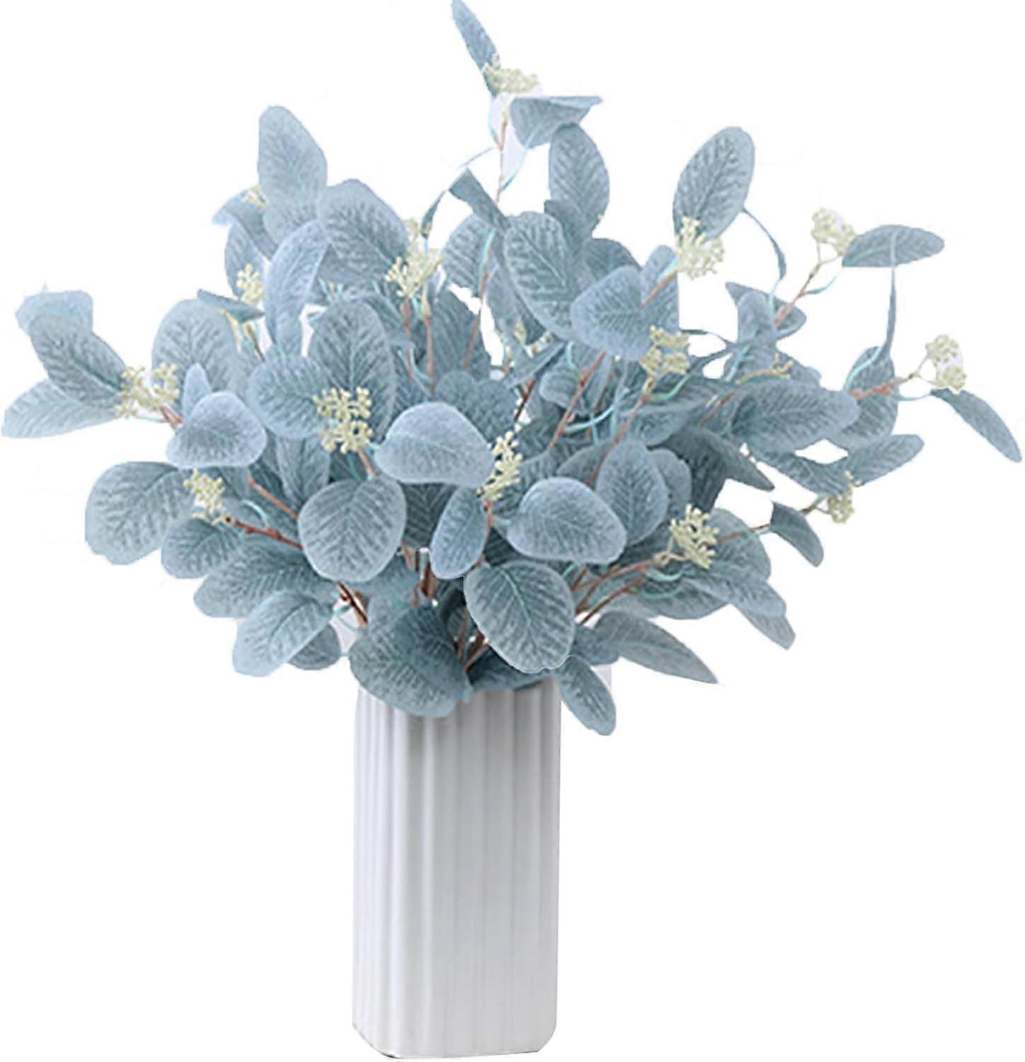 10 PCS 21" Light Blue Artificial Eucalyptus Leaves with Berries, Fake Branches for Home, Wedding, Christmas Decor
