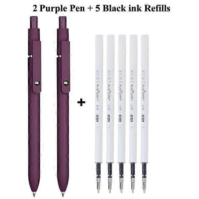 Retro Morandi Retractable Gel ink Ballpoint Pen,Extra Fine Point Black ink Smooth Writing Quick Dry Japan Mikuni ink Refills 2PurplePen 5Blk ink