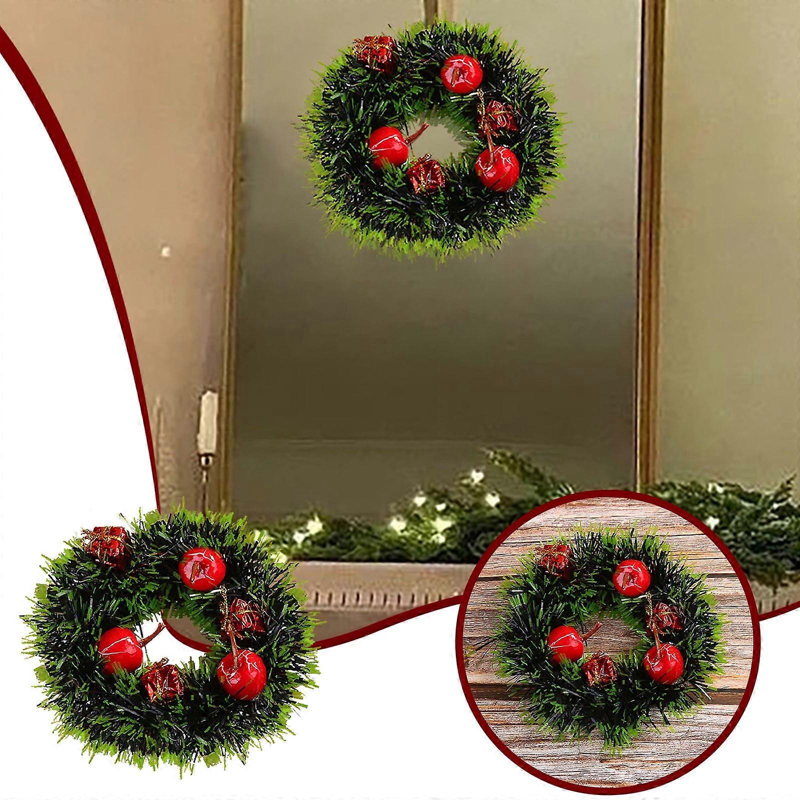 Yakbaofuo 12cm Christmas Wreaths for Front Door, Mini Rattan Circle Pendant, Indoor Outdoor Decor, Compatible with Christmas Tree