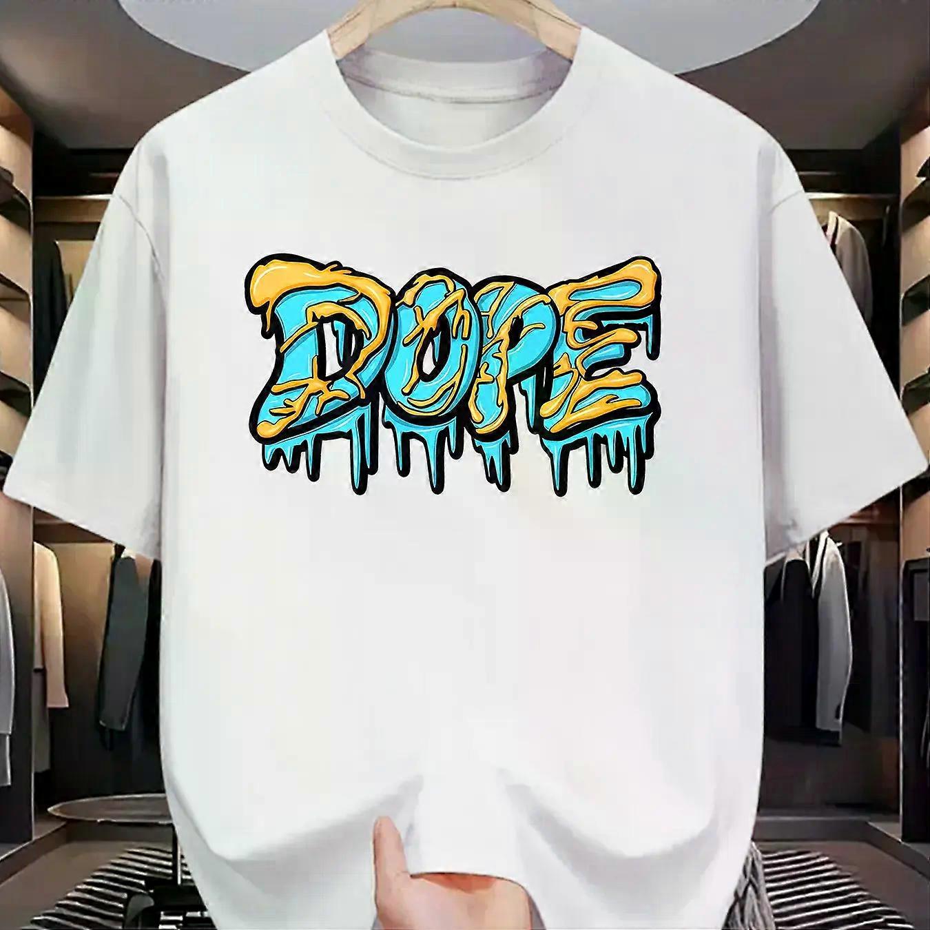 Summer men's 100% pure cotton casual loose oversized fashionable creative DOPE letter printed round neck short sleeved T-shirt