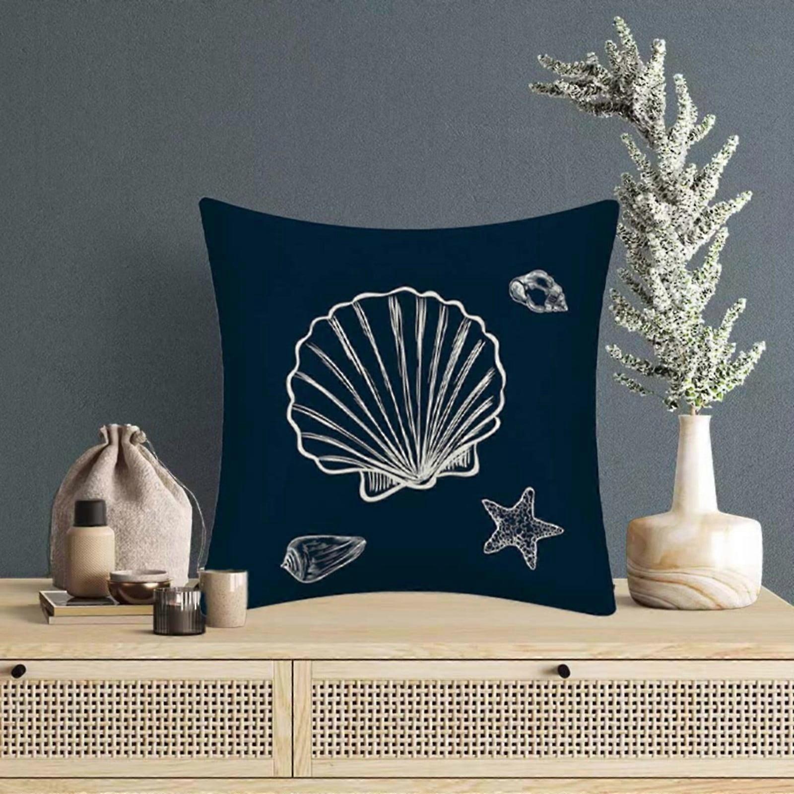 Giyblacko 1 Embroidered Pillowcase Cover, All Cotton, 18x18 Inches, Blue Shells, Compatible with Home Sofa Beds & Chairs Decor