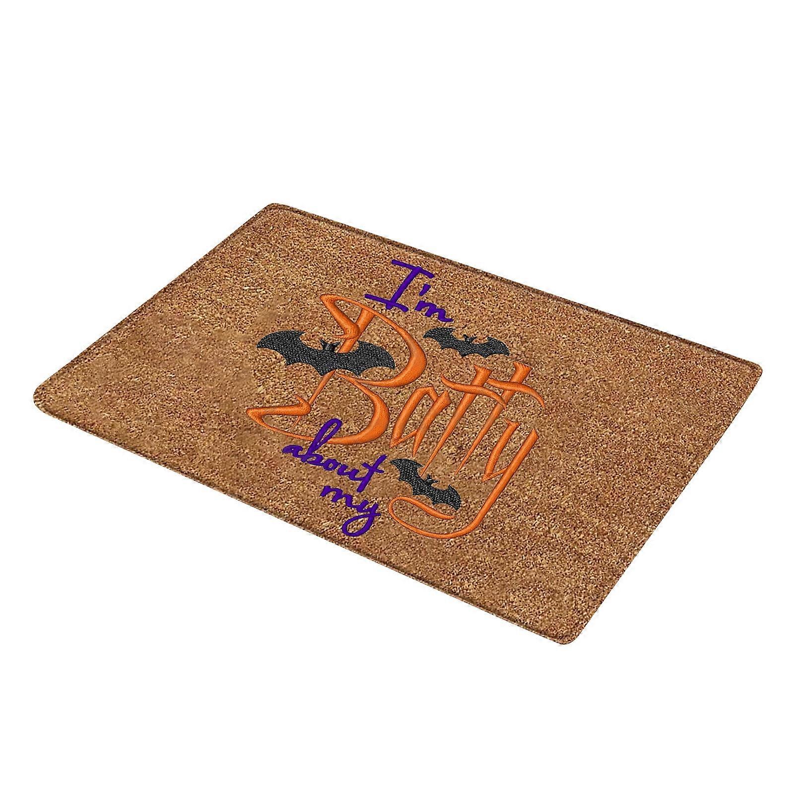 Halloween Door Mat 24"x16" Bat Witch Hat Maple Leaf Welcome Mat, Durable Anti-Slip Floor Mat for Indoor Use