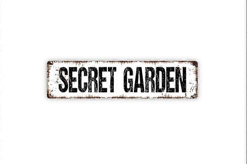 Secret Garden Sign Gardener Backyard Paradise Butterfly Reading Flowers Rustic Street Metal Sign or Door Name Plate Plaque Size: 4 x 16 Inch