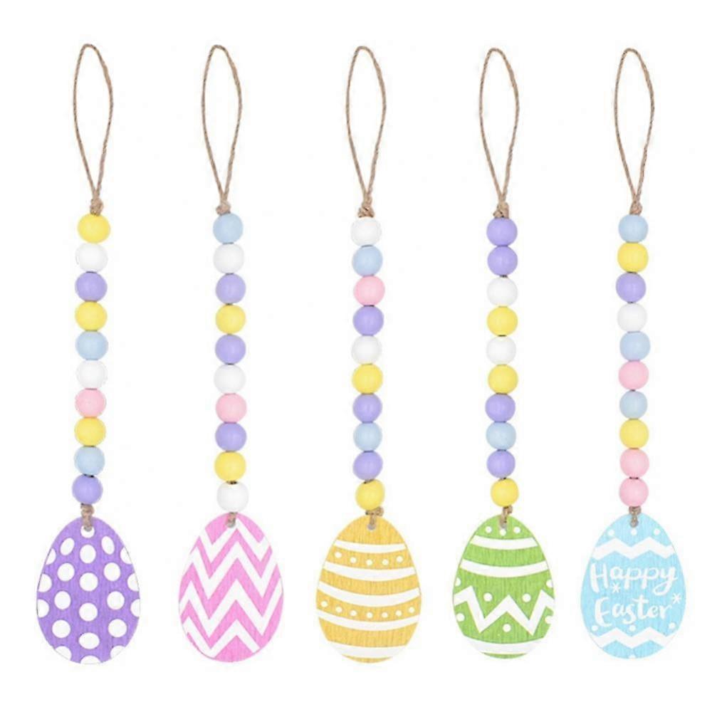 5-Pc Easter Wood Bead Garland w/ Tassels & Rabbit/Egg Tags, Farmhouse Tiered Tray Decor, Holiday Party Hanging Beads