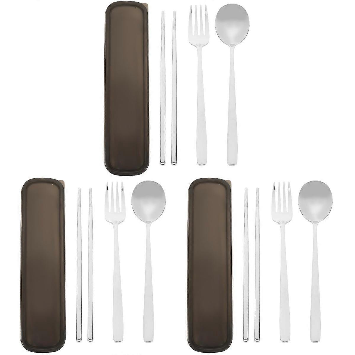 3 Sets Long Handle Spoon Fork Chopstick Household Flatware Stainless Steel Cutlery