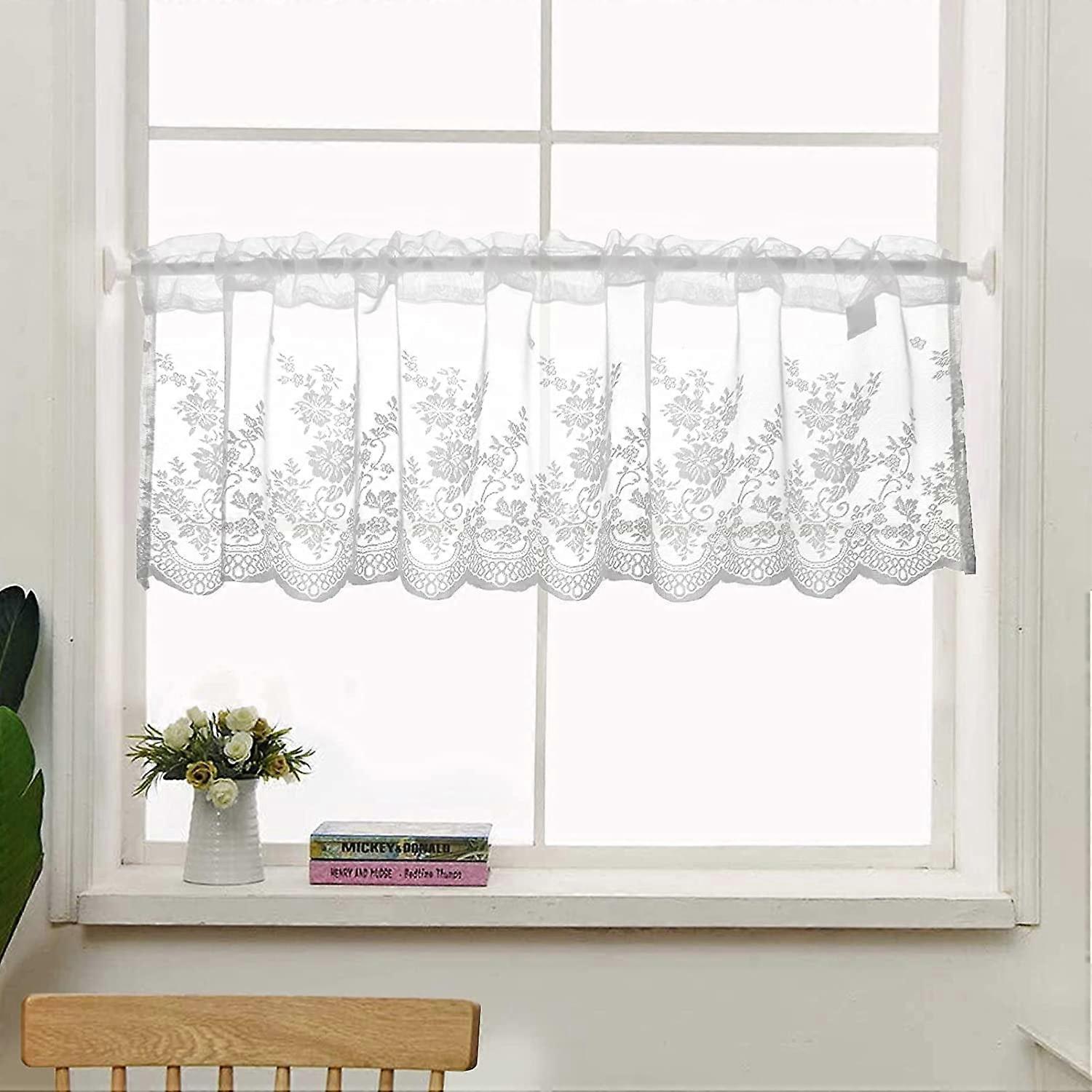 Leaves Embroidery Sheer Tier Curtains, 51" x 16" White Café Curtain Set with Rod Pocket, Compatible with Kitchen, Bathroom Window