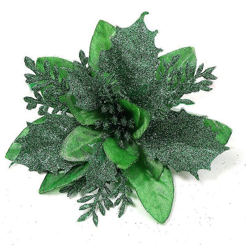 YYCRAFT 12pcs Silk Shinning Sprakled Glitter Poinsettia Artificial Flower for Xmas Tree Christmas Decorations(Green,6 Inch)