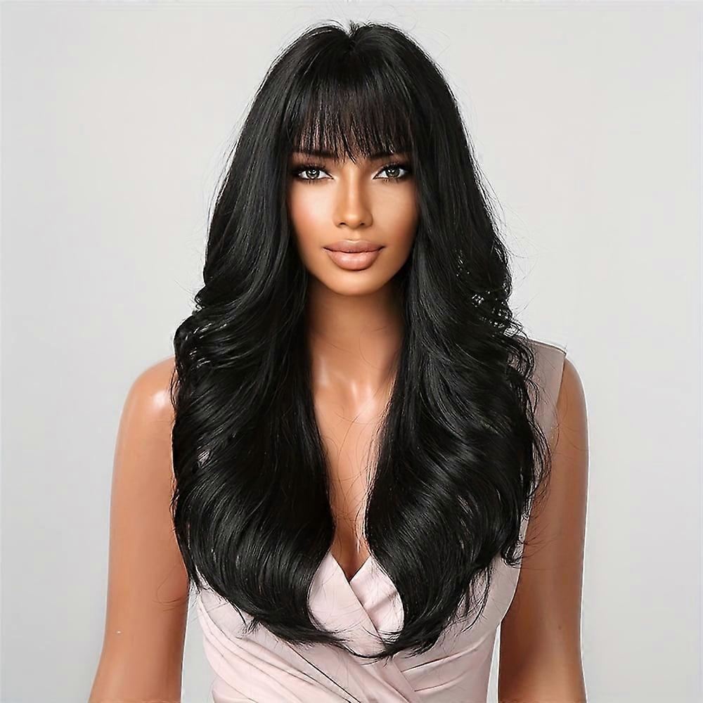 24 Inch Wig Headdress Bangs Women's Black Long Curly Hair Matte High Temperature Silk Rose Mesh Cap