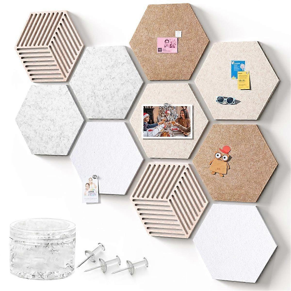 Hexagon Cork Boards for Walls Decor 10 Pack Cork Bulletin Board Tiles with 50 Pins,Pin Board for Of