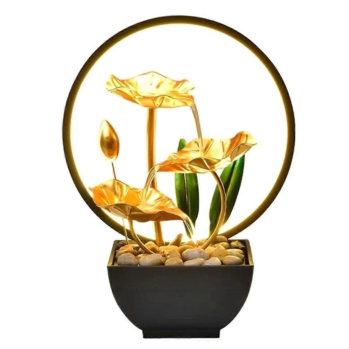 Tabletop Water Fountain USB Powered Relaxation Desktop Waterfall Fountain with Natural Rocks and LE
