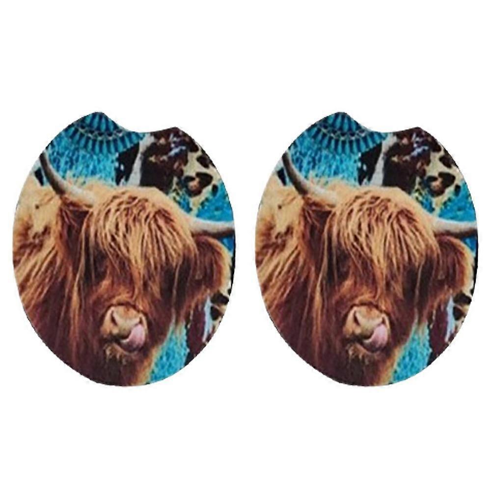 AIXING Cup Holder Coasters for Car 2PCS Absorbent Highland Cattle Insulated Inserts Compatible with Cup Mats, Bright Fadeless Circle Coasters for