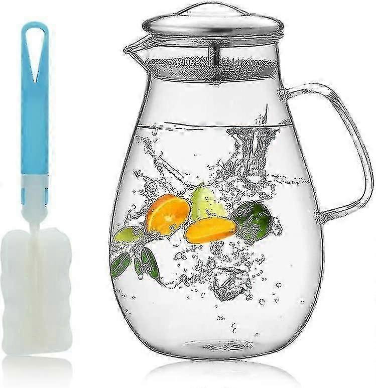 1.9L Borosilicate Glass Water Carafe with Lid for Tea, Coffee and Juice