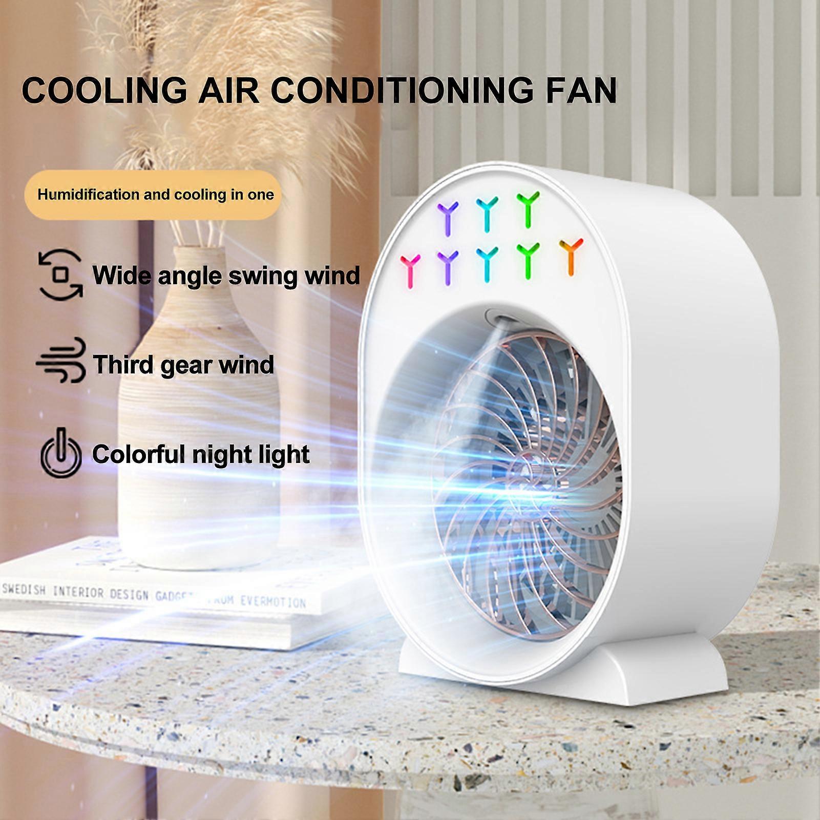 Hesroicy 1200mAh Humidifier Fan, USB Rechargeable Air Cooler with Night Light, 3 Speeds, Low Noise, Wide Angle, for Dorm