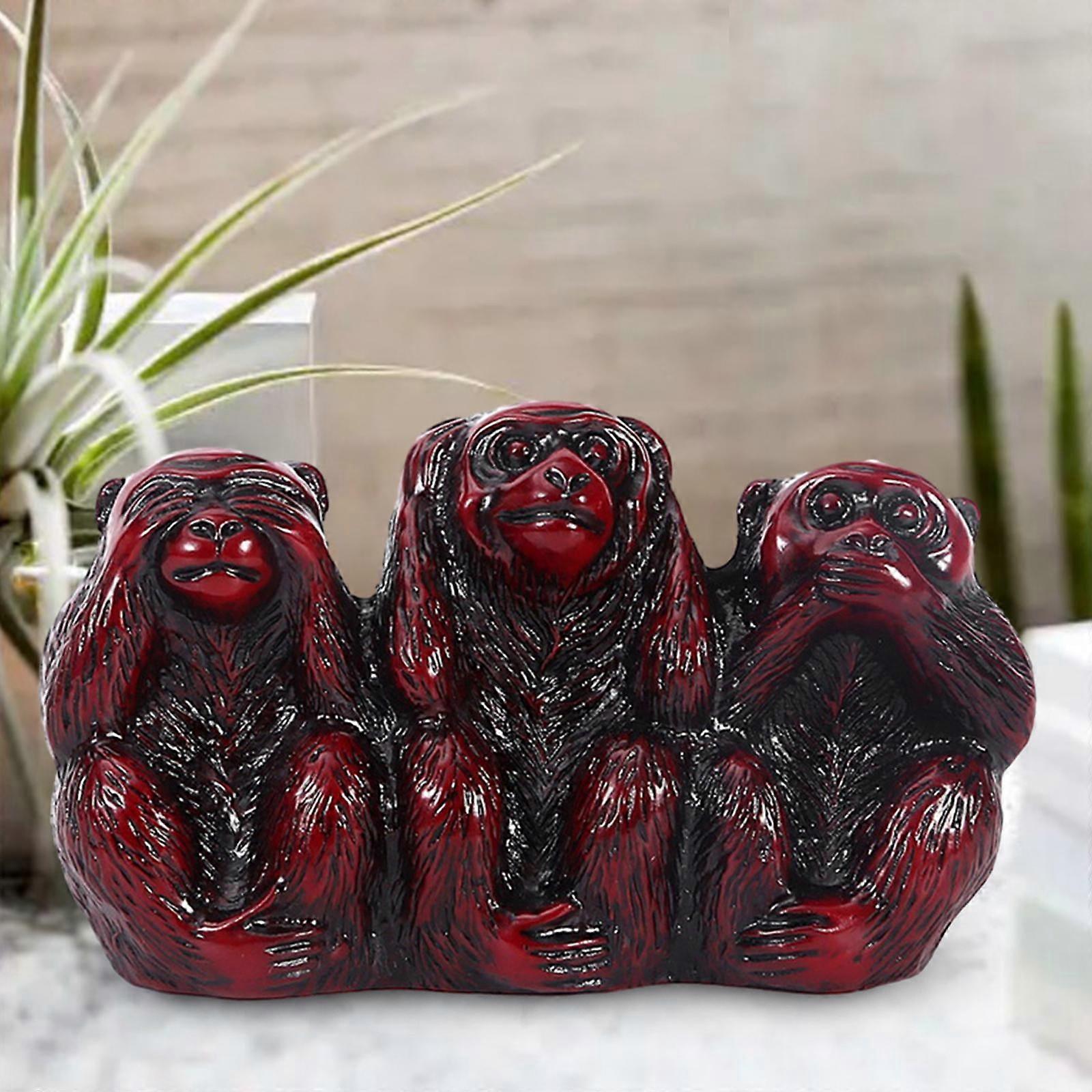 LOVIVER Monkey Figurines, Handmade Resin Sculpture, See No Evil Hear No Evil Speak No Evil, Red Brown for Home, Office Decor