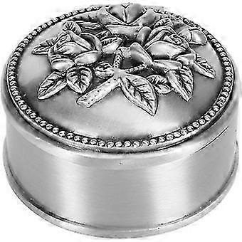 Trinket Box, Small Round Metal Jewelry Case with Embossed Rose Pattern, Rings Storage Gift Box for Girls Women Birthday