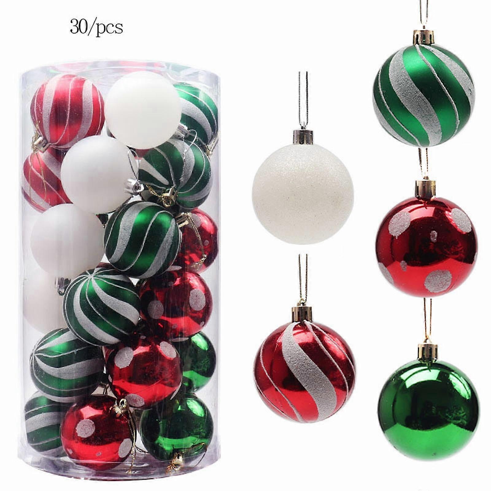 30Pc Hand-Painted 6cm Plastic Christmas Tree Pendant Decorations, Compatible with Christmas Supplies, 30 Colorful Balls