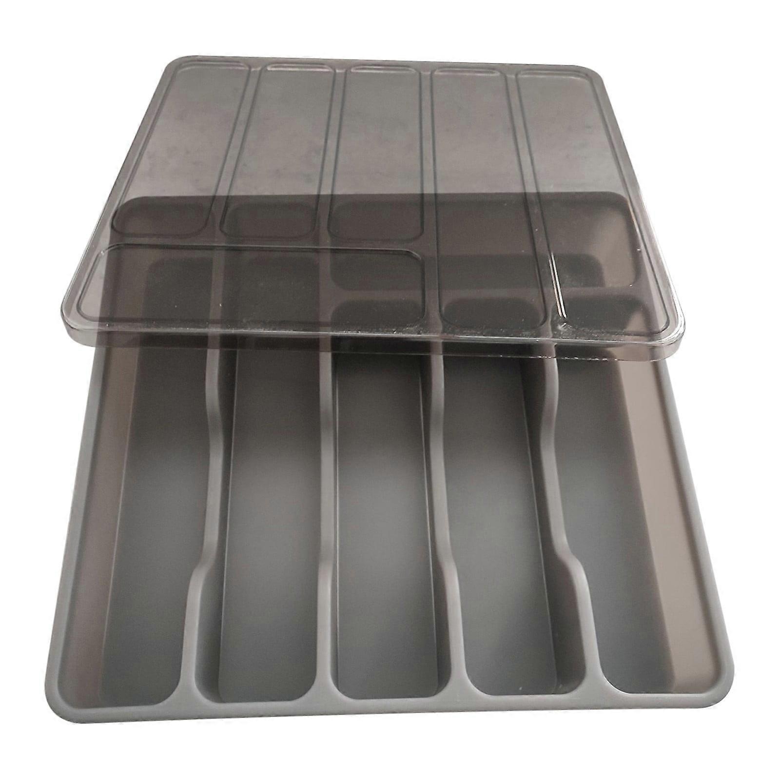 Tahtuvzn Silverware Organizer with Lid - Utensil Tray for Kitchen Drawer & Countertop, Plastic Cutlery Storage Box for Spoons, Forks, Knives