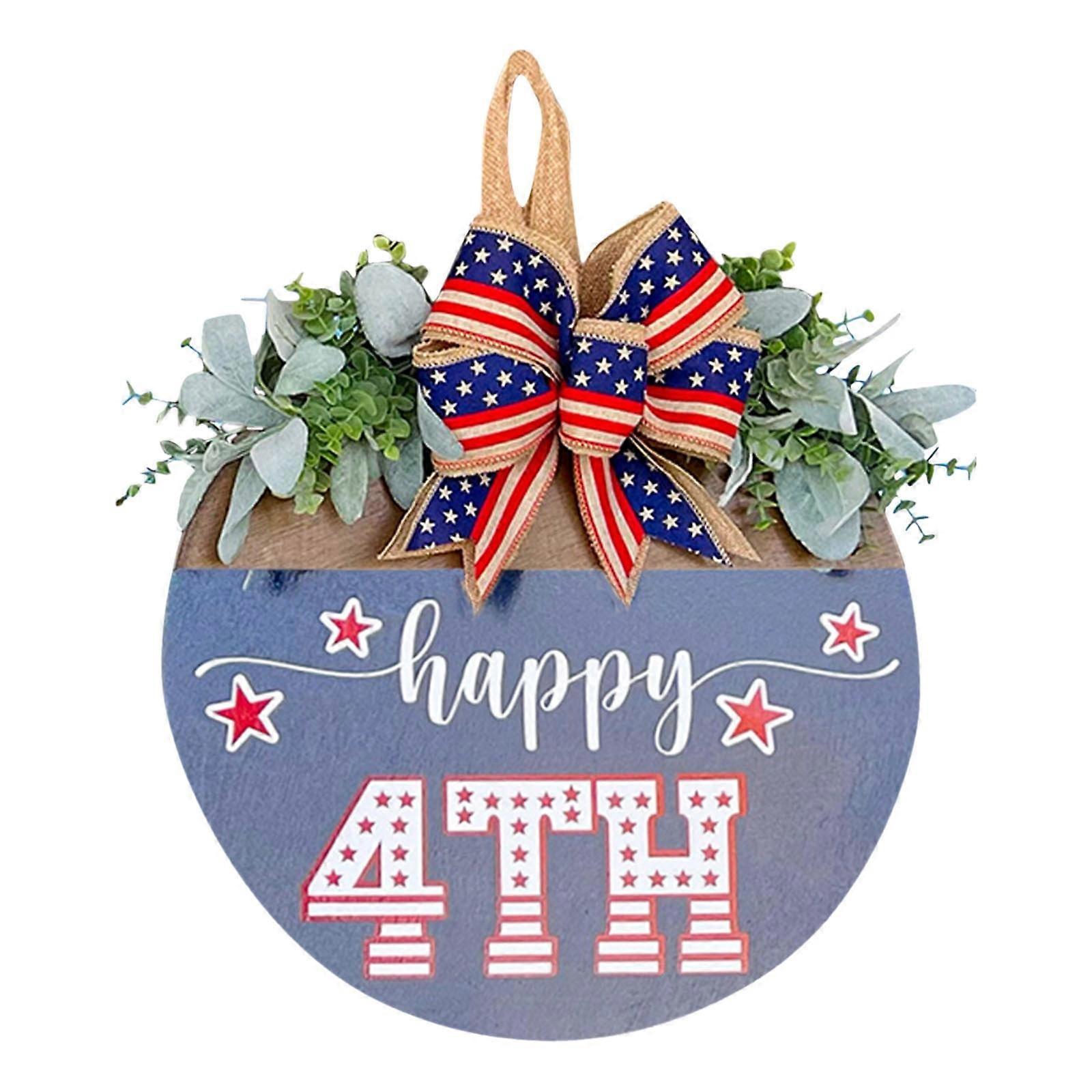 4th of July Wooden Sign Plaque, compatible with ZKCCNUK Independence Day Welcome Door Decor, Wall Hanging for Party & Memorial Day, Up to 30% Off