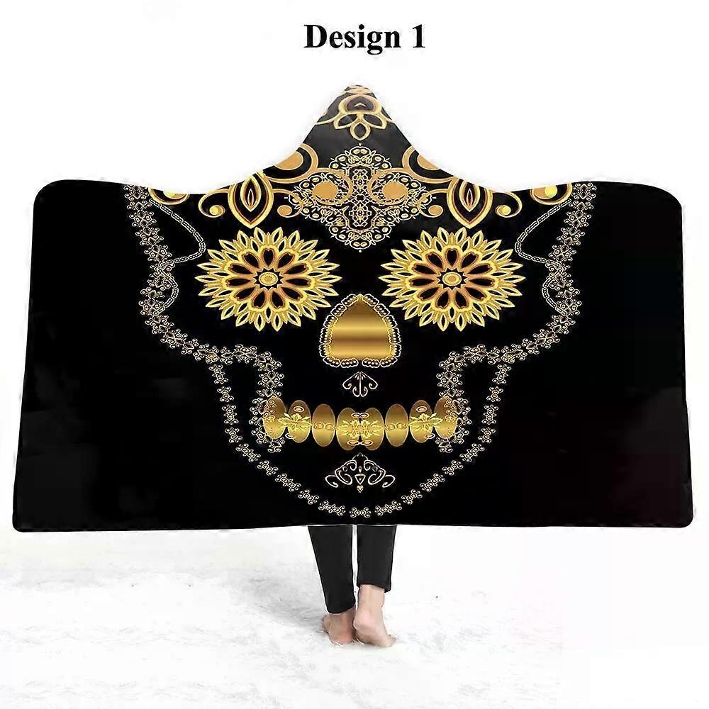 Cool Sugar Skull Fleece Hooded Blanket Sofa Throw Holiday Xmas Birthday Gift