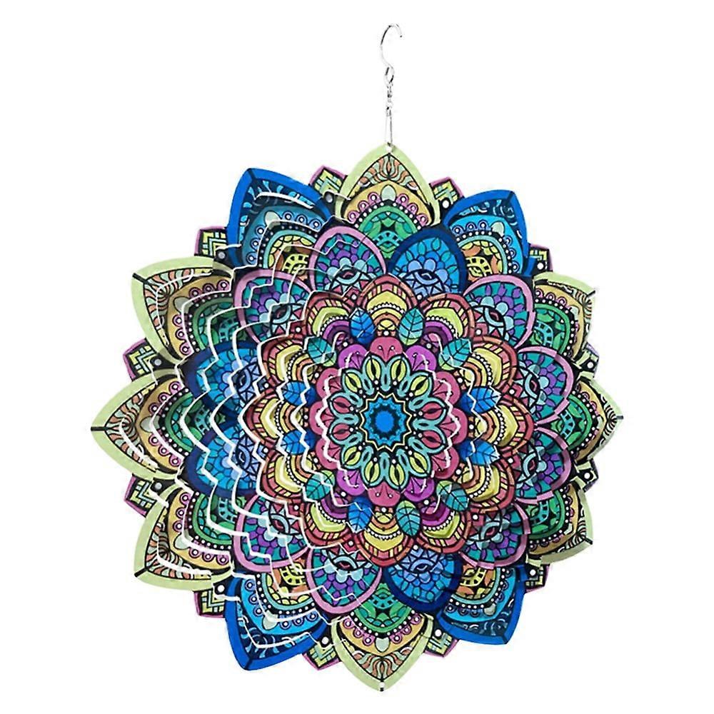 Mandala Wind Spinner-12Inch 3D Stainless Steel Wind Spinners Outdoor Hanging Garden Decoration, Multi Color Mandala Flower Wind Spinners