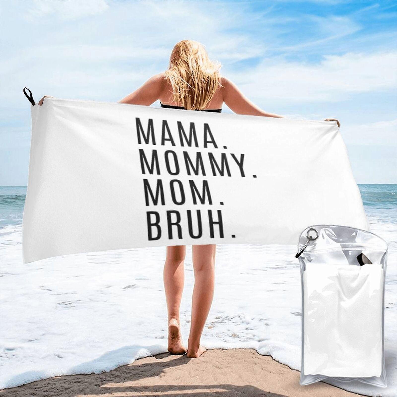 Mama Mommy Mom Bruh Funny Cute Gift Beach Towel, Microfiber Bath Towel Soft Beach Blanket for Swimming Yoga Parade