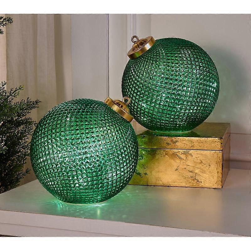 Set of (2) 8" Illuminated Diamond Glass Ornaments by Valerie