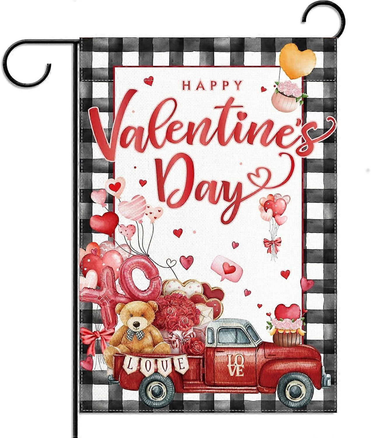 Custom Linen Happy Valentines Day Garden Flag 12.5x18 Inch Double Sided Valentines Day Decor Galentines Day Decorations and Supplies for Home
