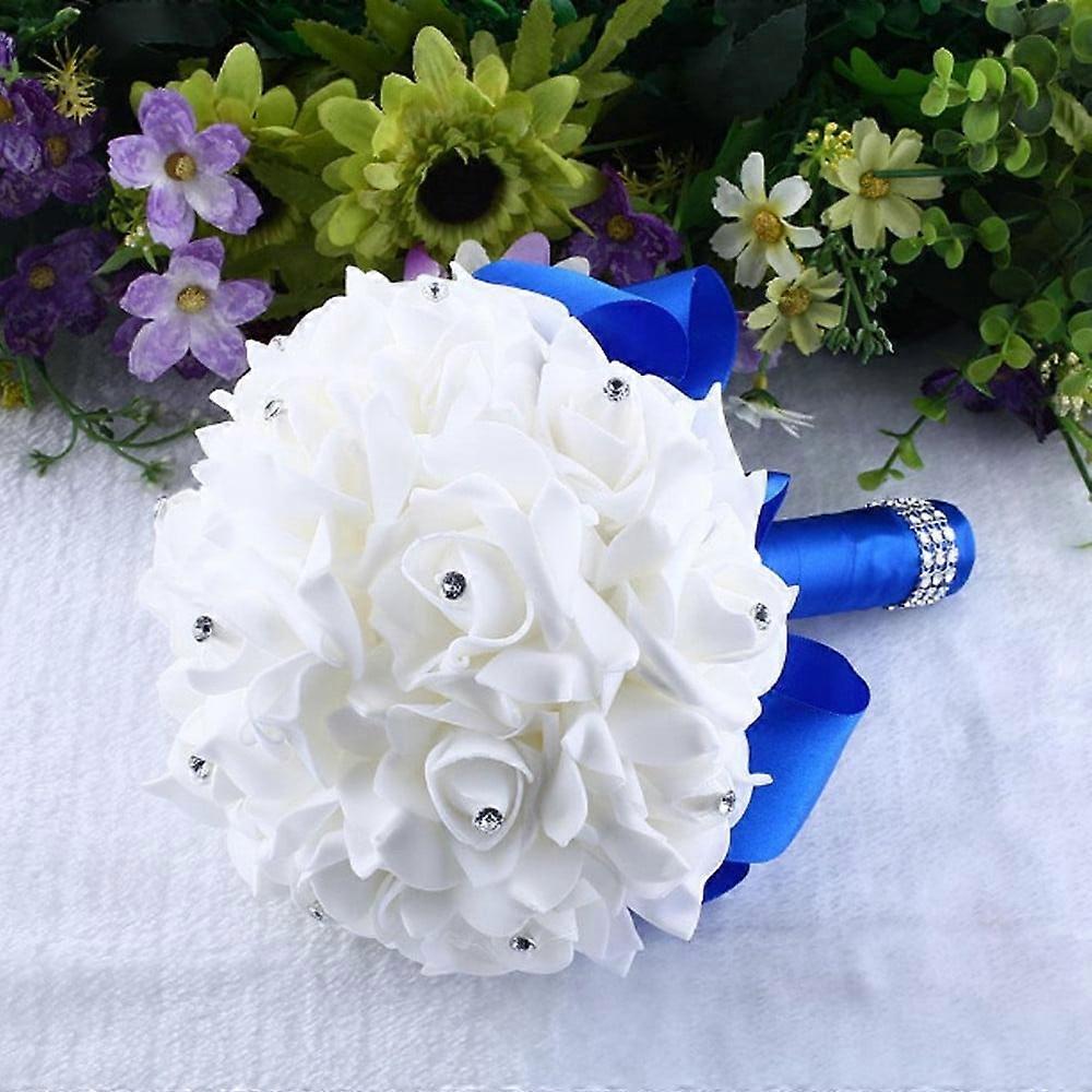 Kiplyki Crystal Rose Pearl Bridesmaid Wedding Bouquet Flower Blue