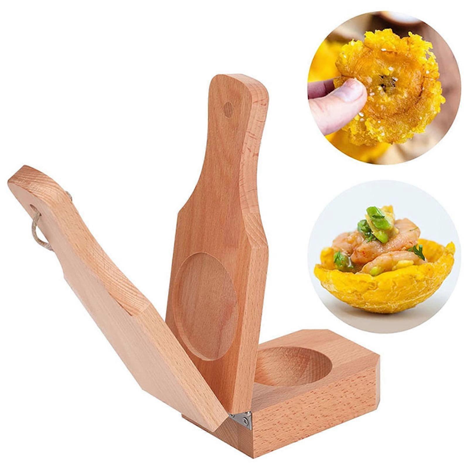 Hariumiu Wooden Banana Grinder Press with Handle Banana Crusher Multifunctional Kitchen Tool for Plantain Cups Chips